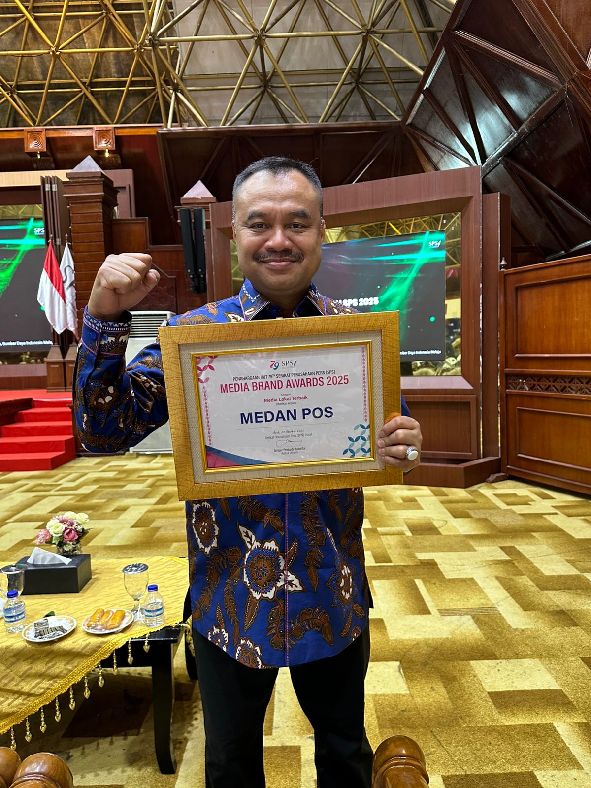 Banda Aceh, MPOL -Ketua Umum Serikat Perusahaan Pers (SPS) Pusat Januar P Ruswita memberikan penghargaan kepada Harian Umum Medan Pos sebagai Media Lokal Terbaik. Penghargaan ini langsung diterima Pemimpin Redaksi Harian Medan Pos H Farianda Putra Sinik SE pada ajang Media Brand Awards 2025 dalam rangkaian HUT SPS ke 79 di Banda Aceh-Sabang.