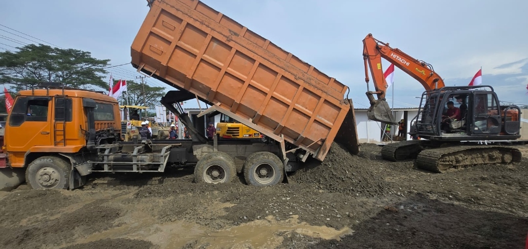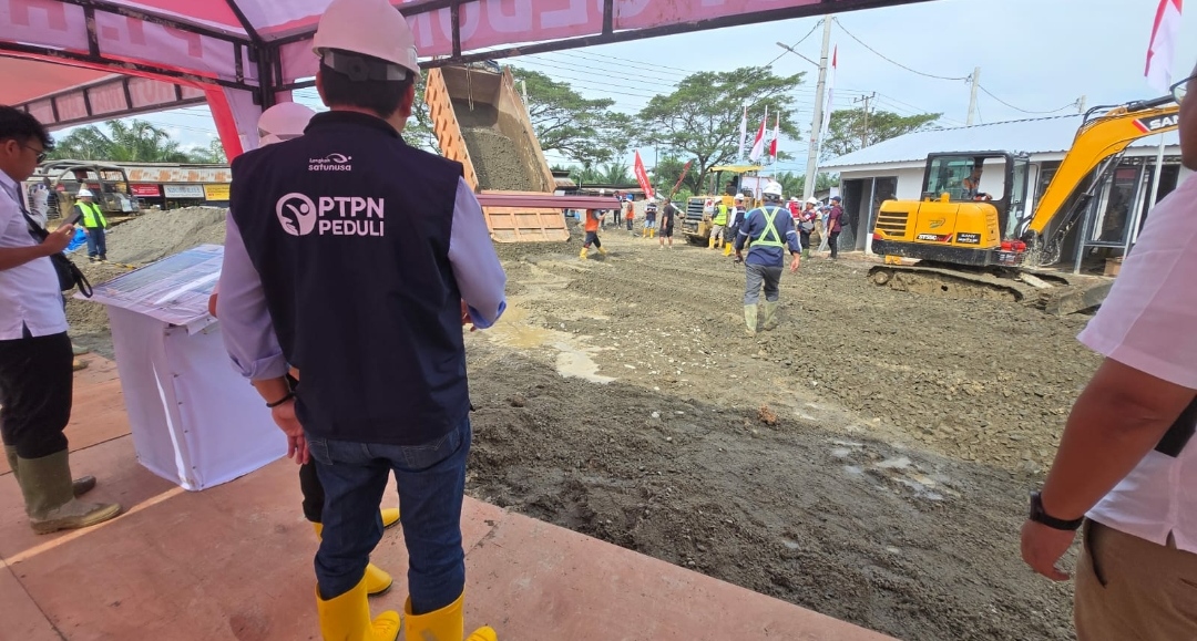 Chief Operation Officer (COO) Danantara sekaligus Kepala BP BUMN, Dony Oskaria, meninjau progres pembangunan Huntara yang berlokasi di areal konsesi PT Perkebunan Nusantara I (PTPN I), tepatnya di Kebun Tanjung Seumantoh, Kecamatan Karang Baru, Kabupaten Aceh Tamiang, Senin (29/12/2025).