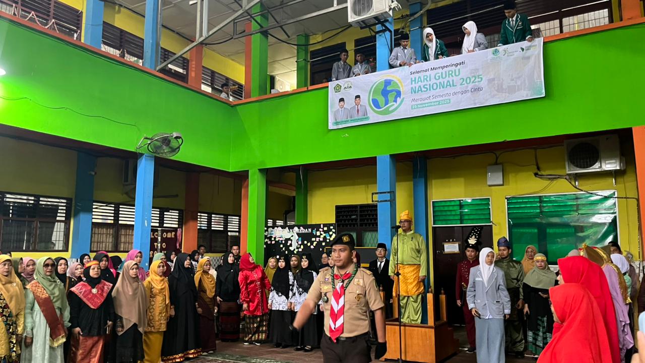 Kita menyampaikan rasa syukur karena keluarga besar MAN 1 Medan masih tetap memperingati hari kebesaran guru, yang tahun ini mengambil tema "Merawat Semesta Dengan Cinta,". Ini sekaligus menjadi pengingat bahwa tugas pendidik tidak hanya sebatas mengajar di ruang kelas, tetapi juga menanamkan nilai kemanusiaan, welas asih, dan kepedulian terhadap lingkungan.