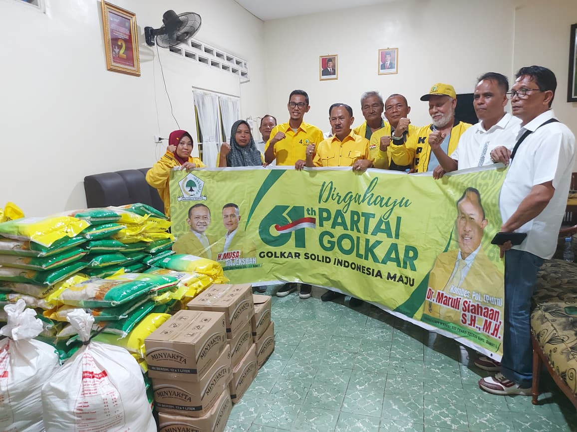 Maruli Siahaan SH.MH sebagai Kader Partai Golkar dan anggota DPR RI Komisi XIII Dapil Sumut I menyerahkan bantuan sosial dalam rangka memperingati Hari Ulang Tahun (HUT) Partai Golkar yang ke-61.