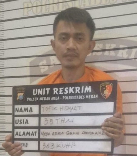 Sumatera UtaraBaca Juga:Faktanya, pada Jumat (17/10) petugas telah meringkus pelaku pencurian dengan pemberatan (curat) yang mencuri dua unit hp sekaligus saat korbannya melaksanakan ibadah ke gereja. Tersangkanya adalah Agus Sianturi (32) warga Jalan Denai, Gang Bersama, Kelurahan Tegal Sari I, Kecamatan Medan Area. Petugas memberikan tindakan tegas terukur di bagian kiri pelaku.