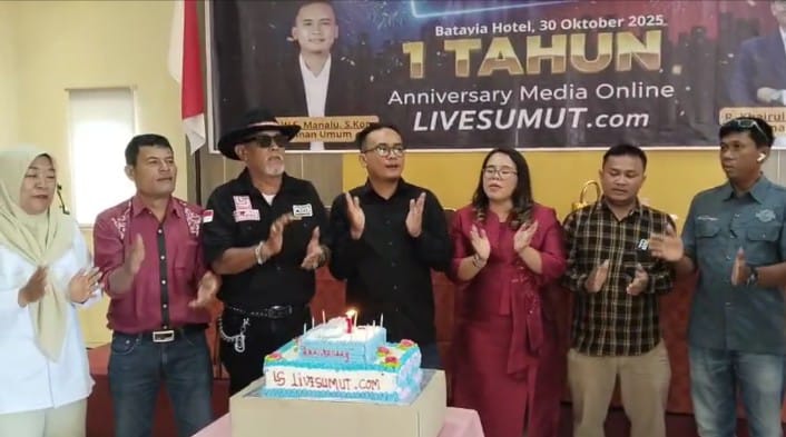 P.Siantar, MPOL -Perayaan Hari Ulang Tahun (HUT) ke-1 media LIVESUMUT.com berlangsung meriah dan penuh kehangatan di Toba Hall, Batavia Hotel, Kota Pematangsiantar, Kamis (30/10/2025).