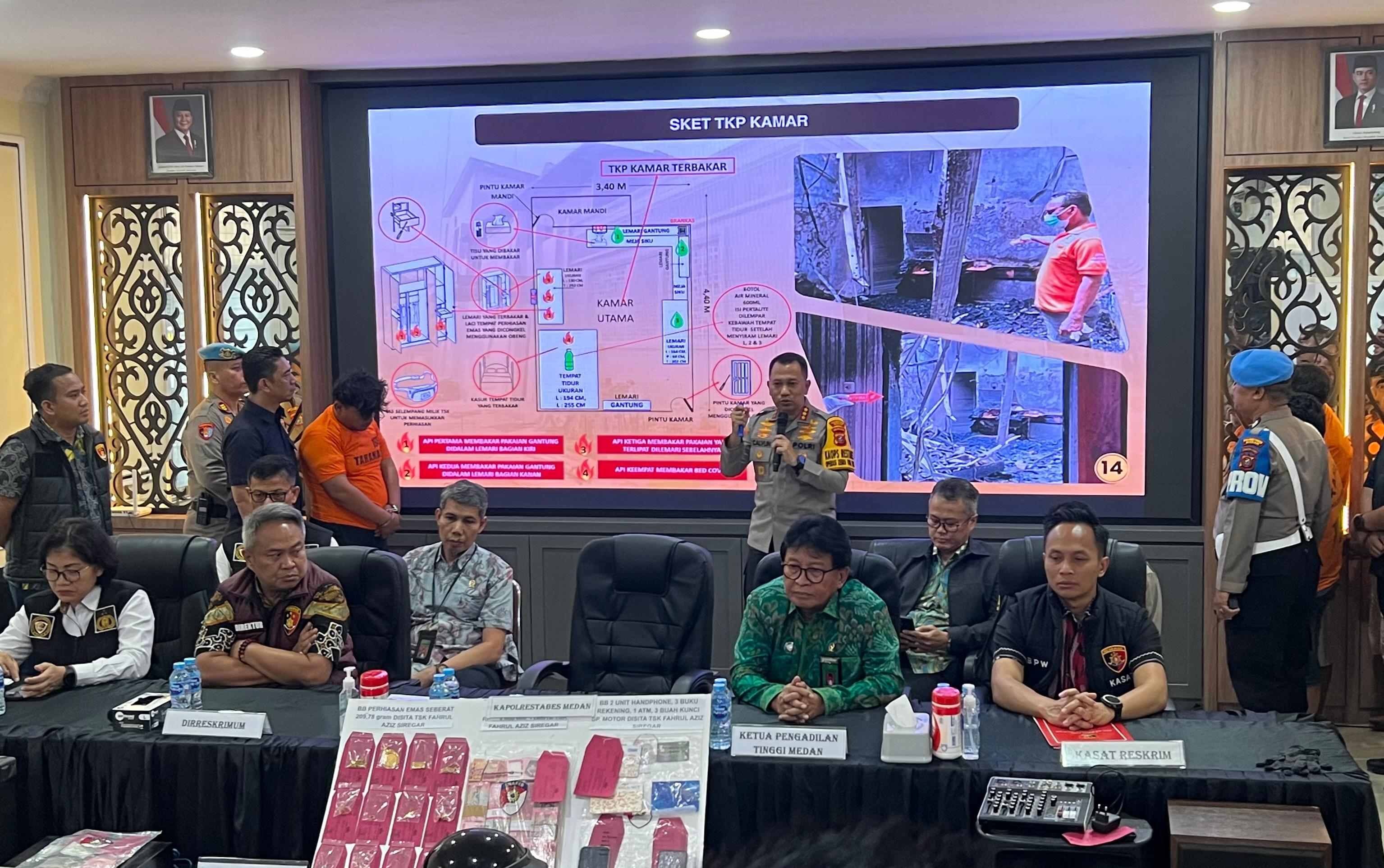Medan, MPOL - Unit Pidum Satreksrim Polrestabes Medan mengungkap kasus pencurian disertai pembakaran rumah hakim Khamozaro Waruru di Jalan Pasar II, Kompleks Taman Harapan Indah (THI), Kelurahan Tanjung Sari, Kecamatan Medan Selayang.
