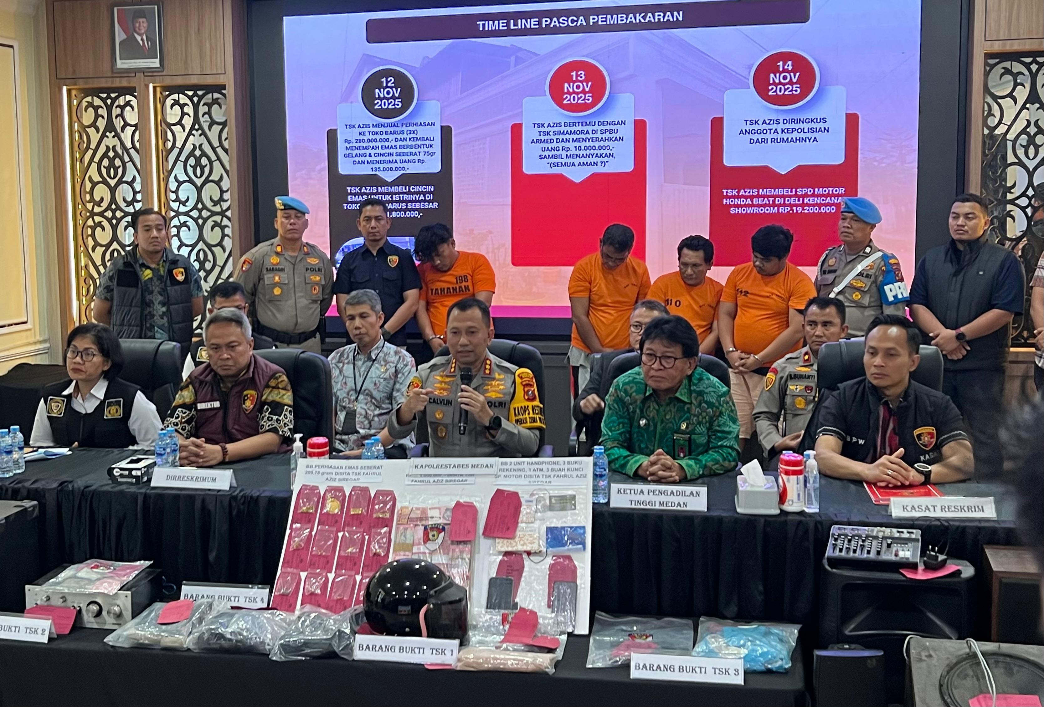 Calvijn mengatakan usai membakar rumah korban, tersangka langsung menuju Toko Emas Barus di daerah Delitua untuk menjual emas curian tanpa surat senilai Rp 25 juta. Lalu tersangka Azis menghubungi tersangka Simamora, untuk bertemu di SPBU sambil menanyakan situasi rumah korban. Tersangka memberikan uang Rp 5 juta sebagai uang tutup mulut.
