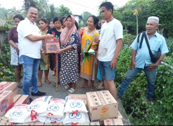 Medan, MPOL: Anggota DPR RI Komisi XIII Fraksi Golkar Dapil Sumut I dengan didampingi Bangun Taruli Siahaan (Tenaga Ahli & Ketua Relawan Palito), tim rumah aspirasi dan tim relawan Palito memberikan bantuan sosial kepada warga Dusun IV, Desa Simalingkar, Kec Pancurbatu, Kab Deli Serdang, Kamis (4/12)