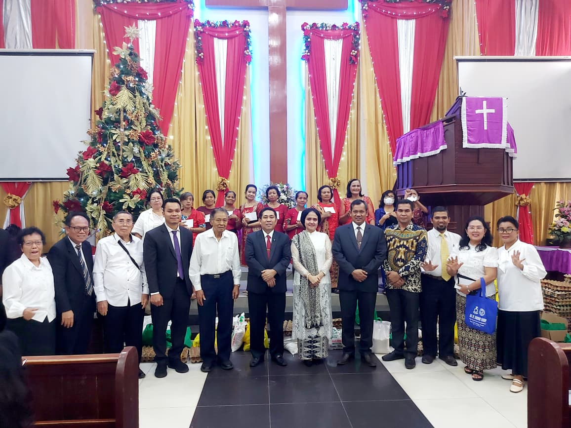 Melalui perwakilannya, Dr Maruli Siahaan selaku pemerhati HKBP menyampaikan SELAMAT HARI NATAL 2025 kepada seluruh Tim Zending HKBP Distrik X Medan-Aceh dan Para Pedagang yang hadir.