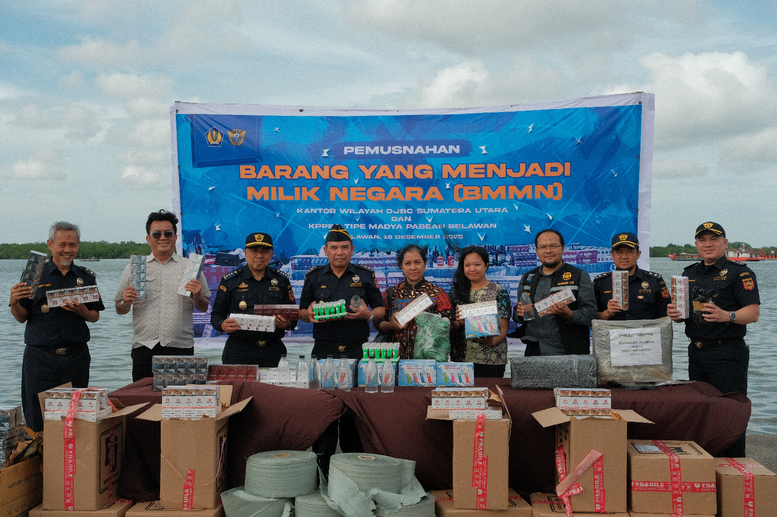 Baca Juga:Barang-barang yang dimusnahkan pada periode akhir tahun ini terdiri dari hasil tembakau ilegal yang terdiri dari rokok sigaret kretek mesin (SKM) dan sigaret putih mesin (SPM) berjumlah 2.432 batangi; barang konsumsi dan pangan yang terdiri dari beras ketan sebanyak 90 bag dalam kondisi rusak; bahan baku pakan ternak atau distillers dried grain with solubles (DDGS) sebanyak 1 unit; puluhan unit barang elektronik,aksesori, mainan serta barang lainnya. Total nilai seluruh barang yang dimusnahkan mencapai Rp113.378.117,00.