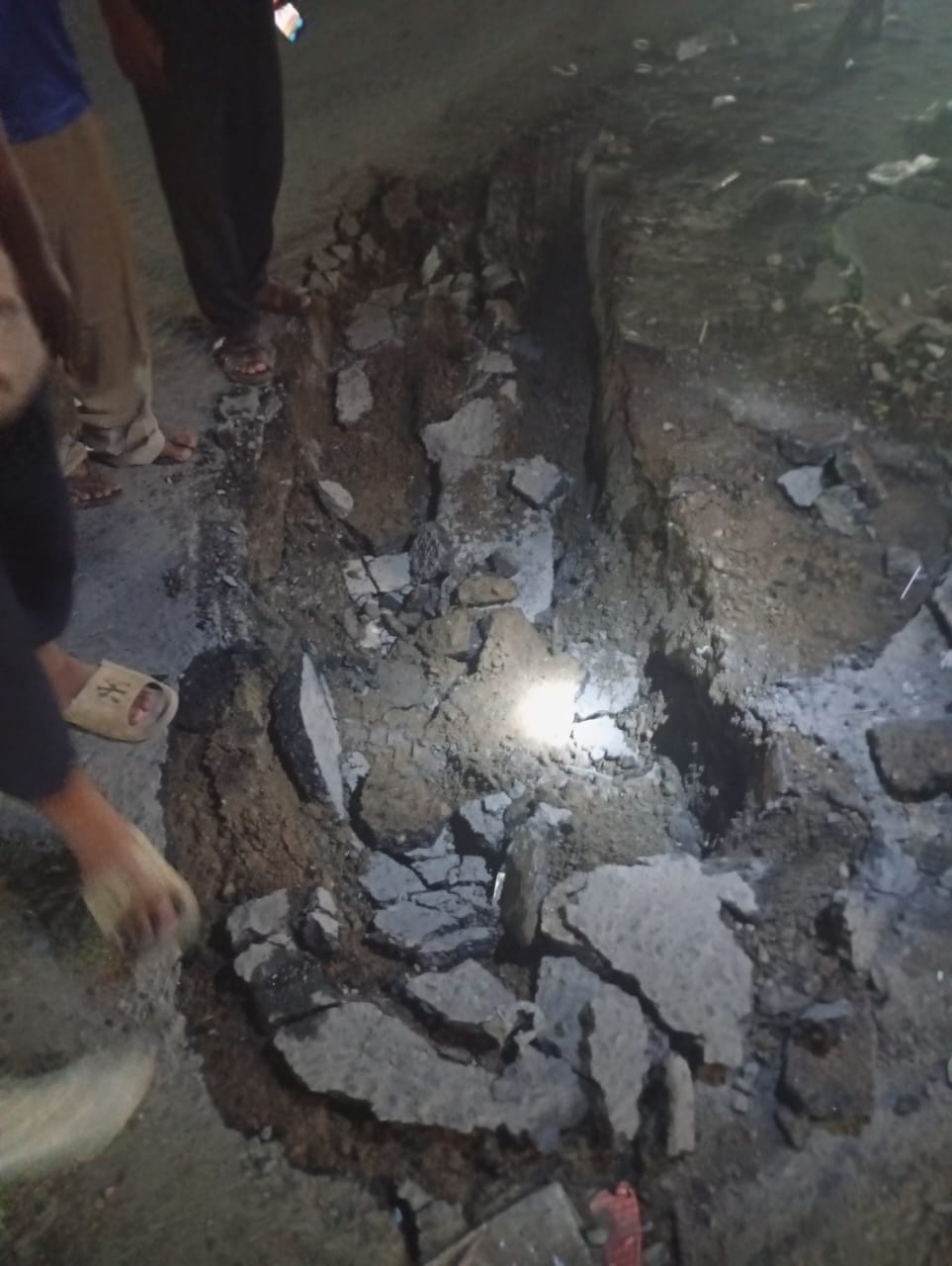 Sebenarnya kami bukan butuh aspal, kami butuh pembenahan saluran pembuangan air atau parit, apalagi dari banjir kemarin, sedimentasi lumpur yang terbawa banjir sudah membuat saluran air yang ada rusak. Ini malah dihancurkan truk itu.