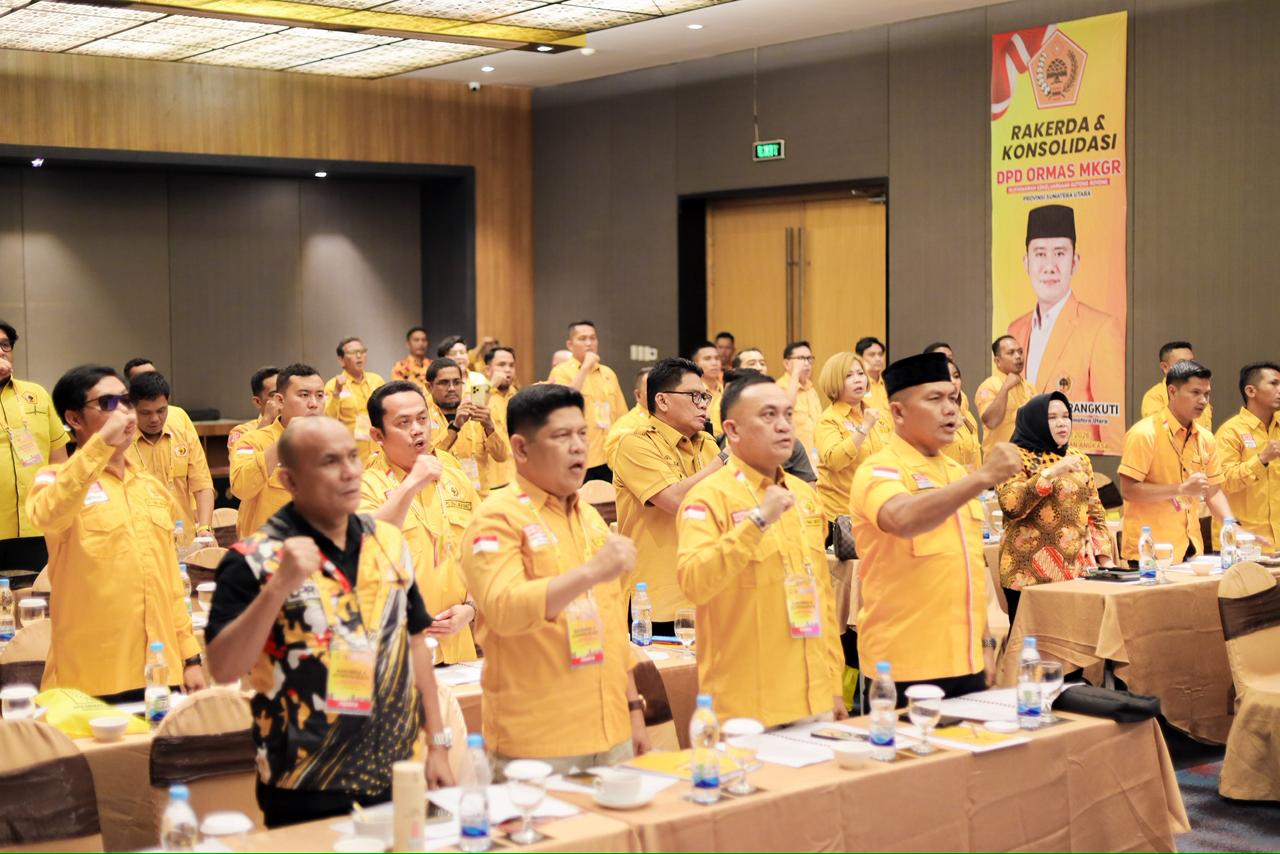 Yang kedua, Rakerda ini rangkaian peringatan hari jadi MKGR ke-66. DPR atau Darma Putra Rangkuti berharap MKGR terus berkontribusi untuk kesejahteraan masyarakat sekaligus membesarkan marwah Partai Golkar di Sumatera Utara.