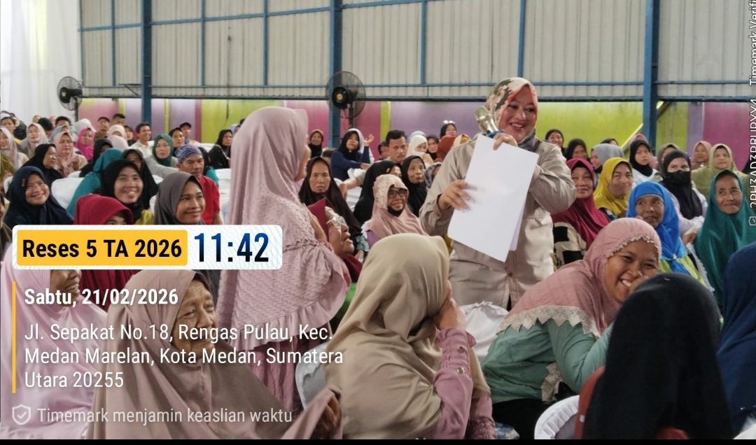 Hj Roma Uli Silalahi SST MKM saat melakukan Temu Ramah dengan Masyarakat Dalam Rangkaian Reses V Masa Sidang II Tahun Sidang 2025-2026 dalam dua sesi pagi dan sore, di Jalan Marelan Gg Sepakat Kelurahan Rengas Pulau, Medan Marelan, Sabtu (21/2).